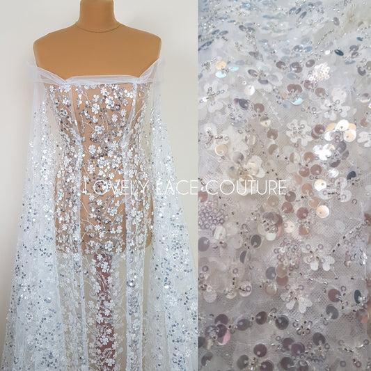 3D Highend handbeaded floral lace, couture lace, evening lace, embroidery lace, bridal lace, Unique lace, Flower Lace, French LL-1134