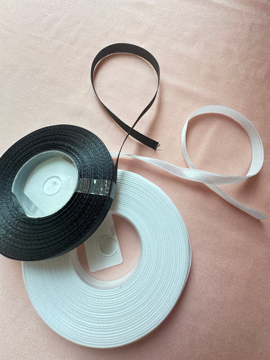 27Meter satin ribbon 6mm wide, in off-white or black color, LL-B100