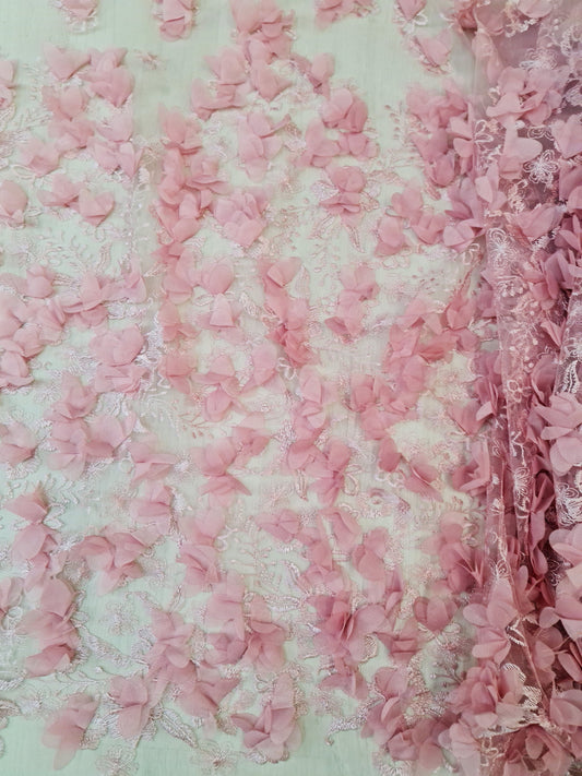 LL-1455, Lovely bridal lace fabric with big 3d flowers in pink color