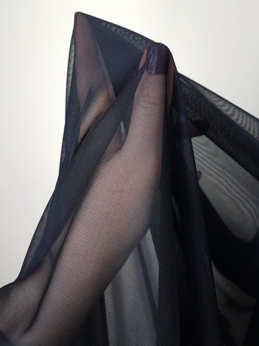 Bi-elastic mesh fabric in black color, 2-way stretch for mesh inserts on dresses, evening dresses or dance costumes LL-1283
