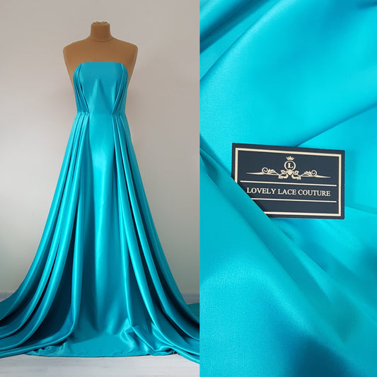 Italian stretch satin fabric in beautiful turquoise or champagne color, Duchesse satin fabric for wedding or evening dresses, high quality