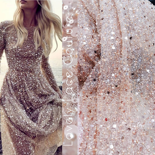 Amazing beaded bridal lace fabric with big sequins, Pallas Couture Lace Fabric, luxurious beaded wedding dress lace, designer lace LL-1297