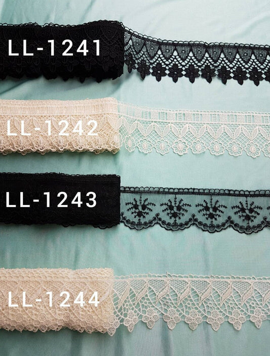 Spitzenbänder in off-white und schwarz, Spitzenbesatz, Spitzenbordüre, Häkelspitze, Dekoration, Kleider, Brautkleider, Abendkleider