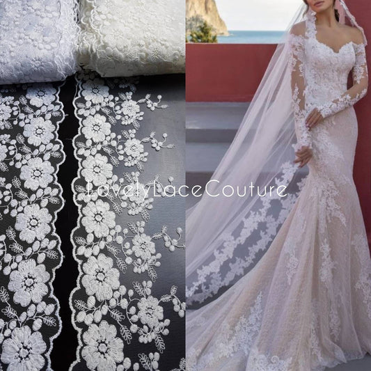 Soft Ribbon-Lace for bridal veils in white or ivory color, lace trim, flower ribbon lace for decoration, bridal wear and much more