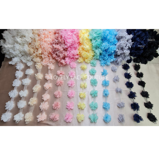 Lace Trims, Appliques, 3D Flowers, Flower Tulle ribbon in several colors for your sewing project.