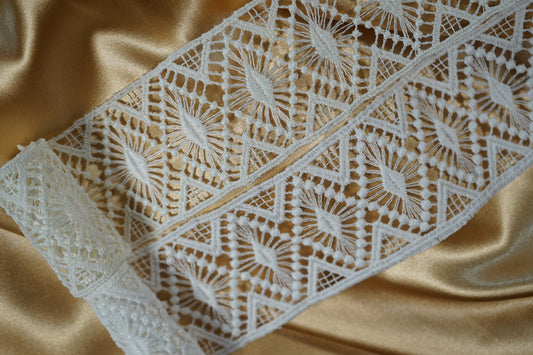 Guipure lace ribbon in white LL-1543, bridal lace trim, Ribbon Lace for bridal or wedding dresses, 100cm length, 16cm wide