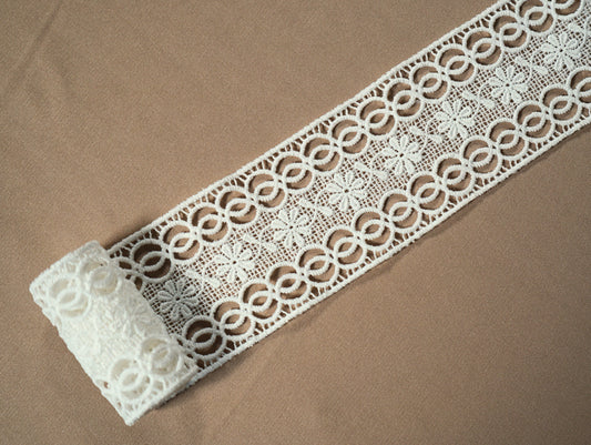 LL-1544, Guipure lace ribbon in off-white, bridal lace trim, Ribbon Lace for bridal or wedding dresses, 100cm length, 6cm wide