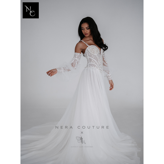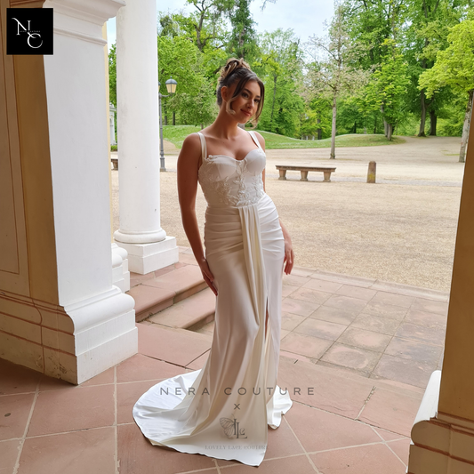 Serena Dress - Handmade white weddingdress with beaded lace corset in mermaid stlye