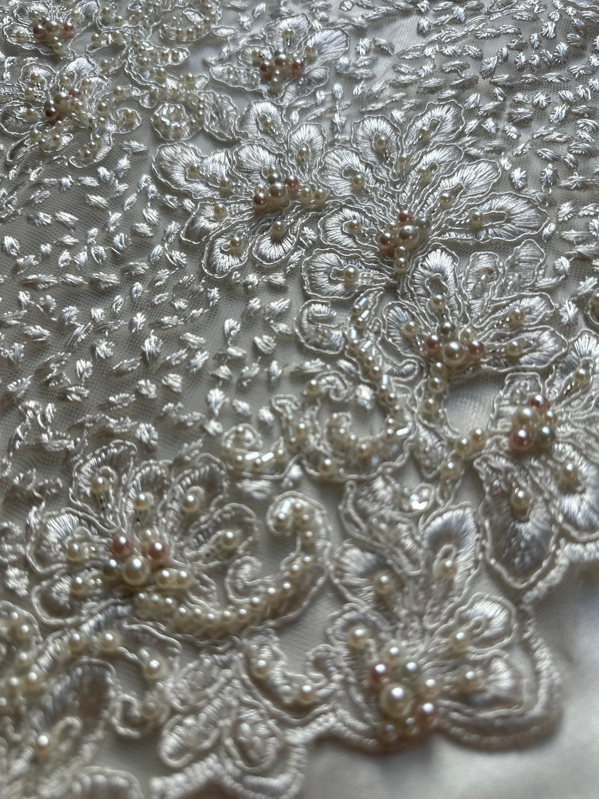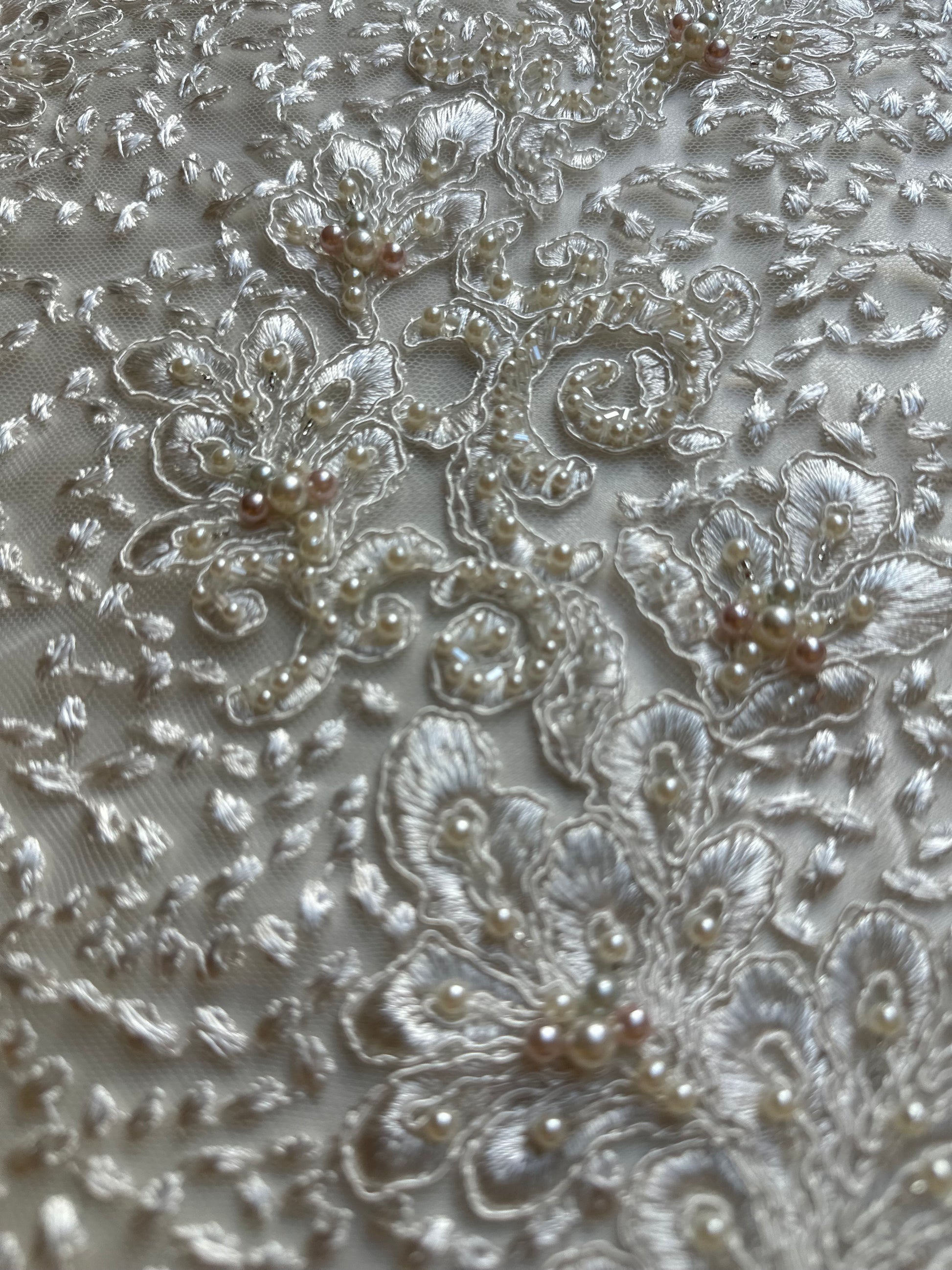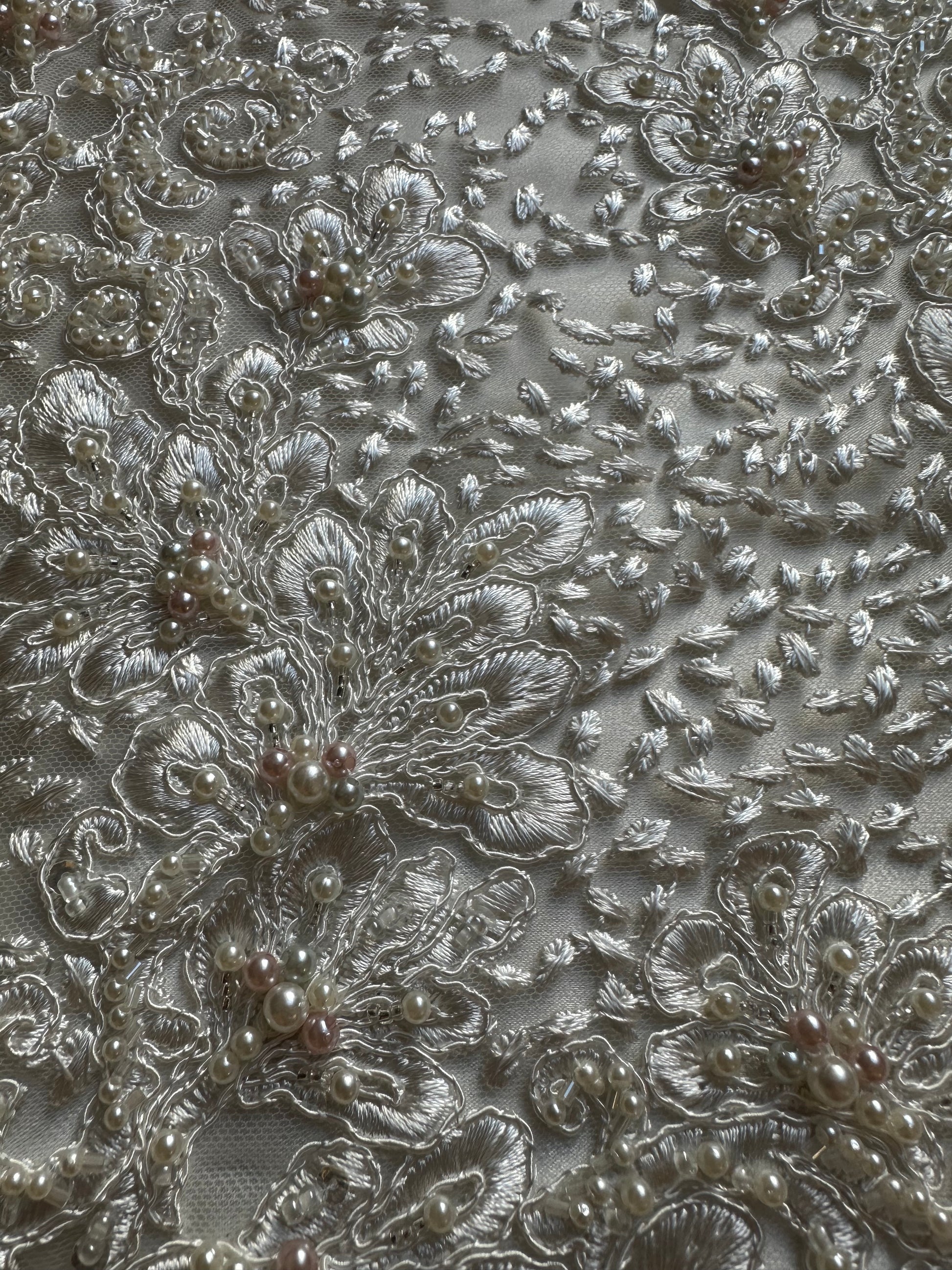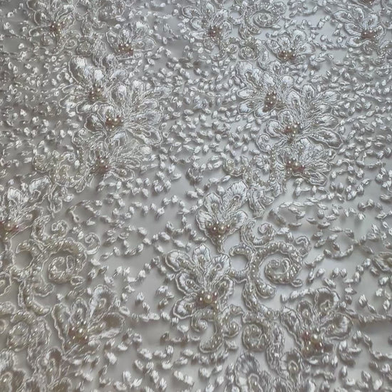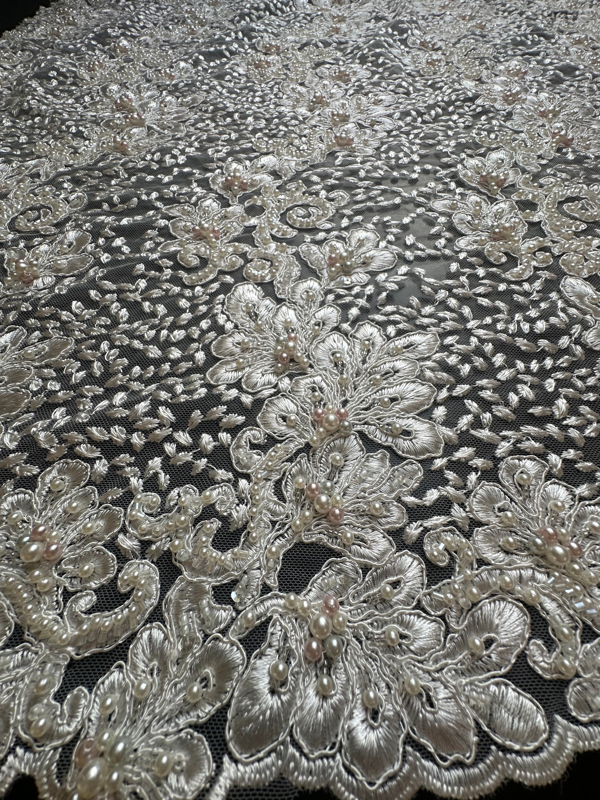 Tissu en dentelle perlée à fleurs, tissu en dentelle de mariage en ivoire, dentelle de mariée, tissu en dentelle brodée, dentelle pour robe de mariée LL-1313
