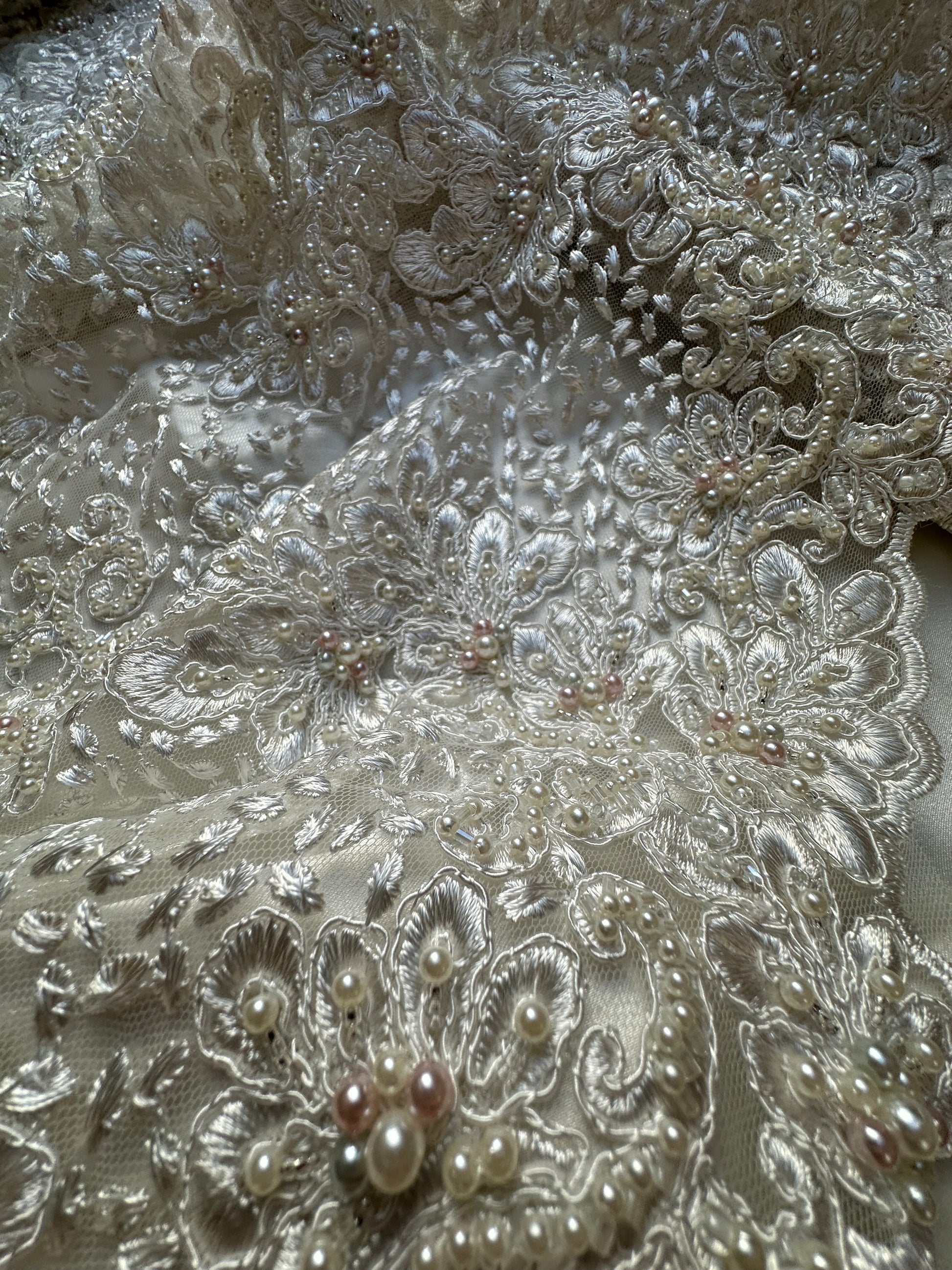 Tissu en dentelle à fleurs perlées, tissu en dentelle de mariage en ivoire, dentelle de mariée, tissu en dentelle brodée, dentelle pour robe de mariée LL-1313