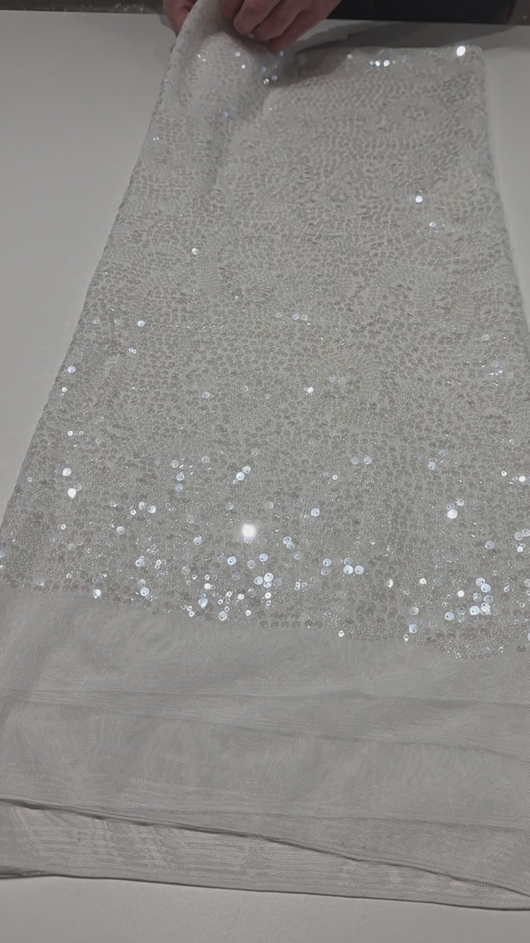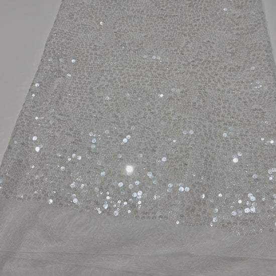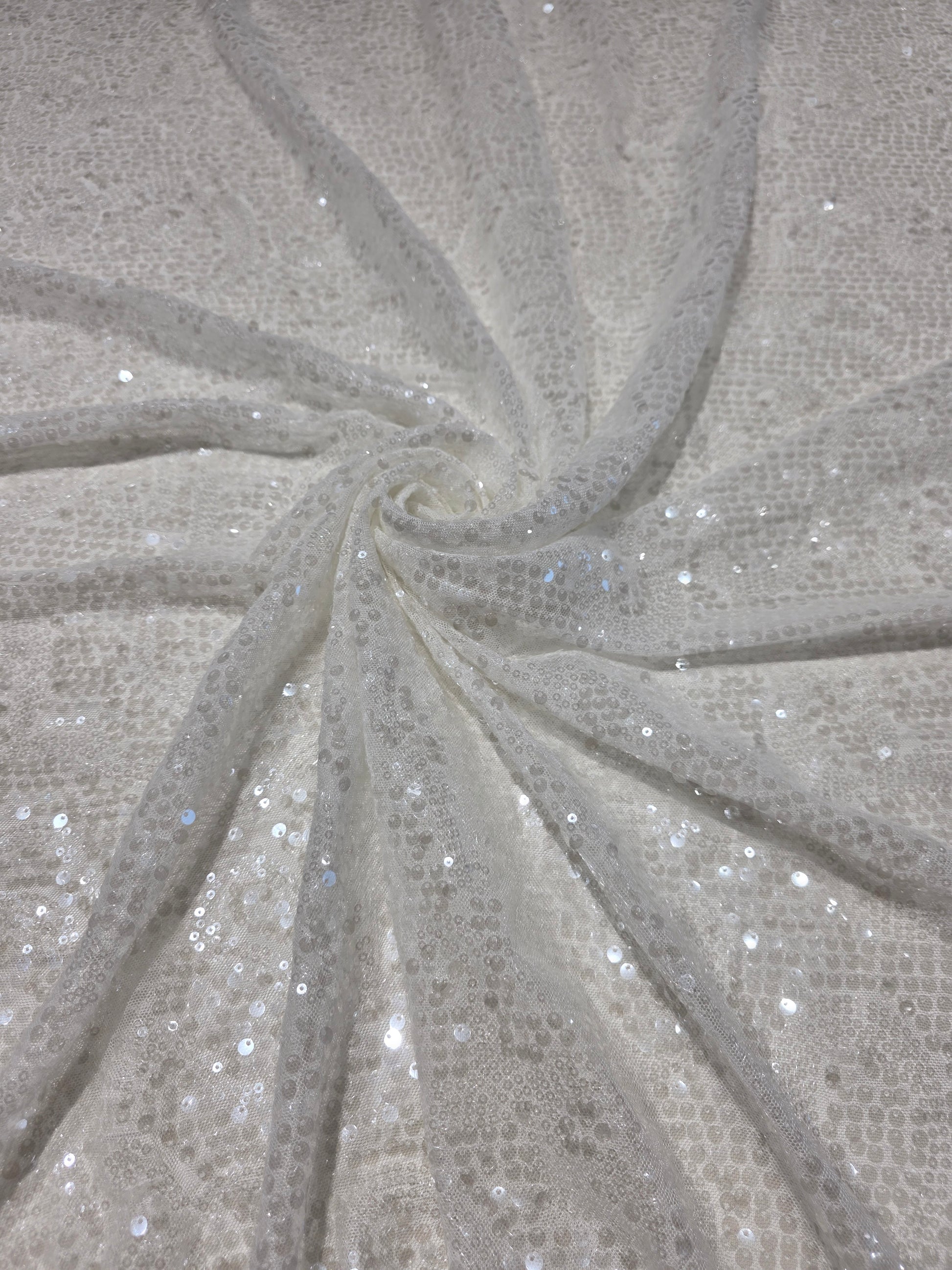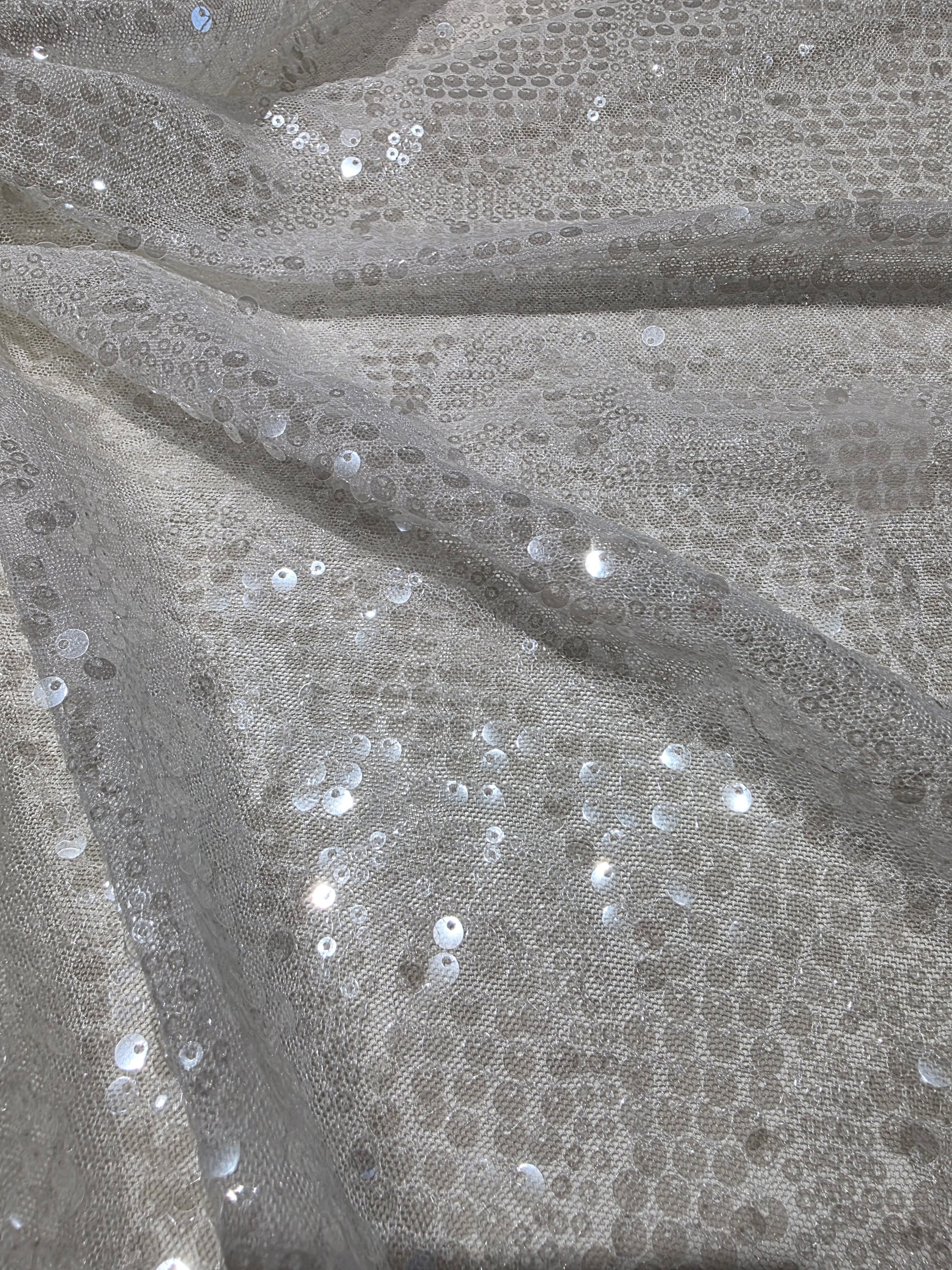 LL-1592, transparent meshfabric with big and small sequins in off-white color